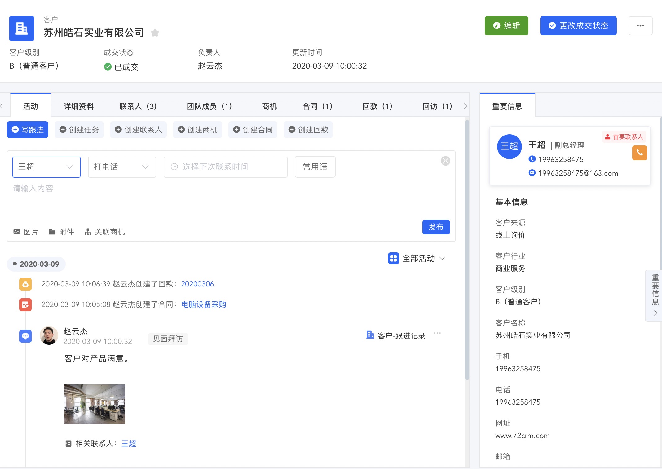 有效帮助销售人员管理好手上的客户联系人资源,专人专事,智能联系提醒,提升跟进效率