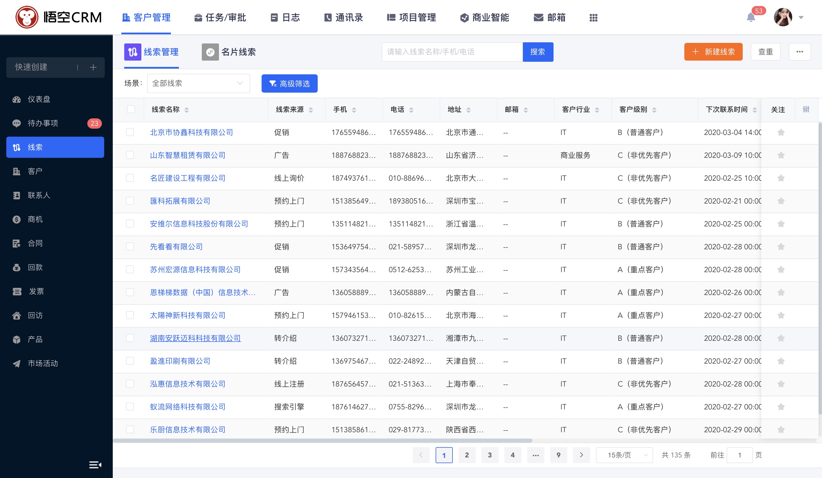 悟空CRM能帮助销售管理好手上的客户资源,通过客户信息、跟进过程、关联商机。合同等的管理,与客户建立紧密的联机,赢得强有力的竞争力优势。