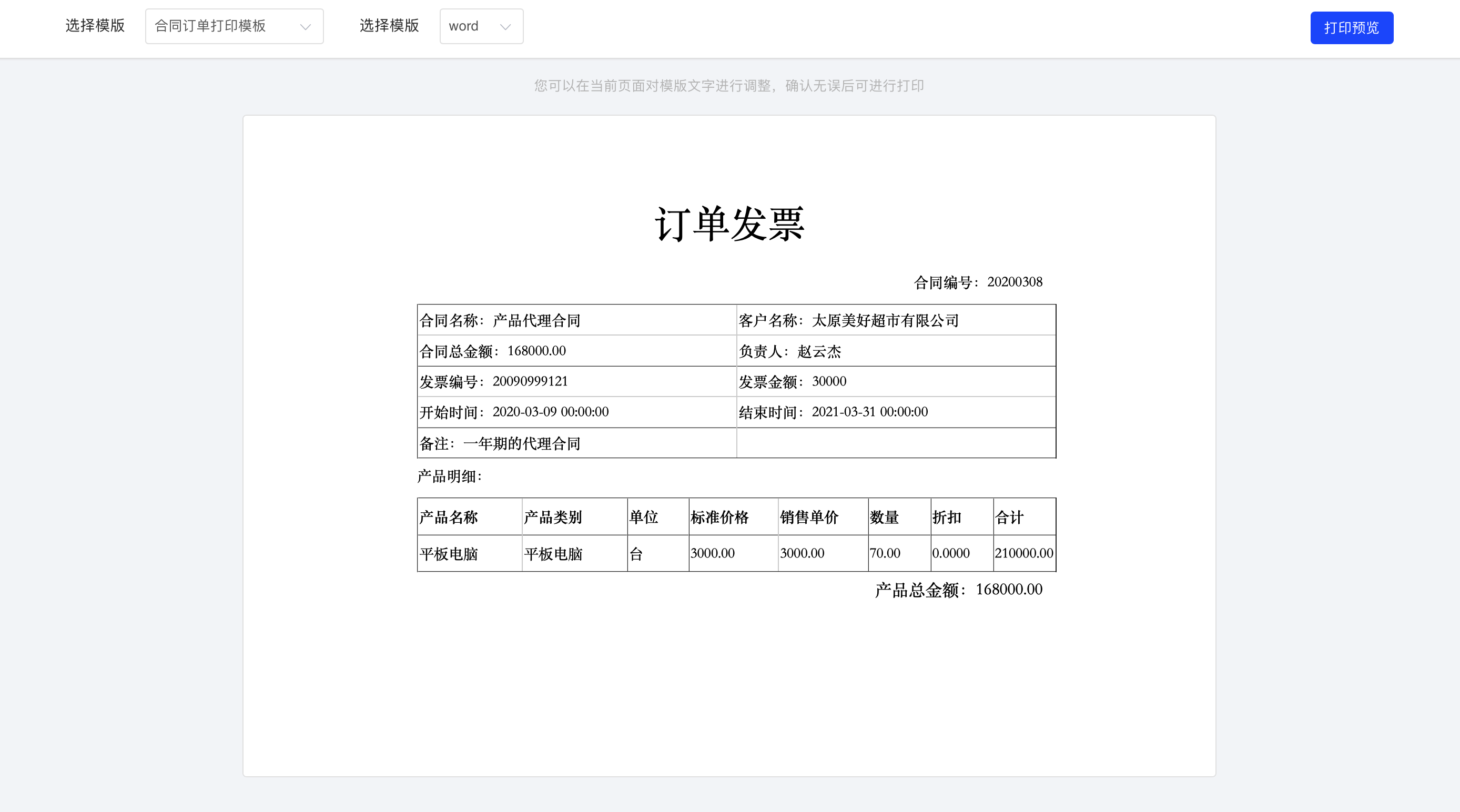 您可以对接发票打印机,通过系统进行一键发票打印。