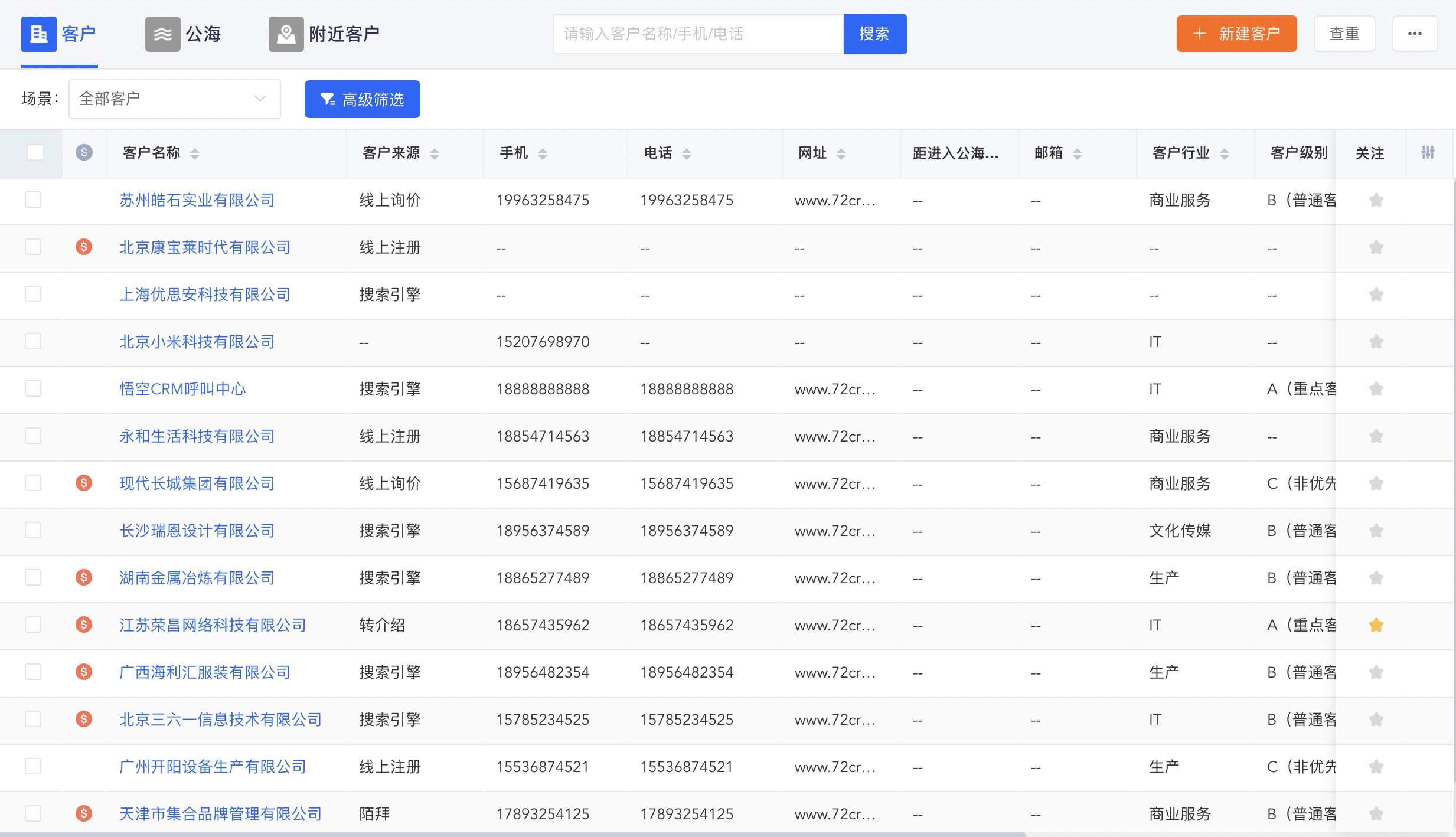 在悟空CRM客户模块中,您可以快速了解客户的全景信息,包活:客户基本信息、客户签约信息、客户合同信息等,这些数据会在悟空CRM中为您永久保存