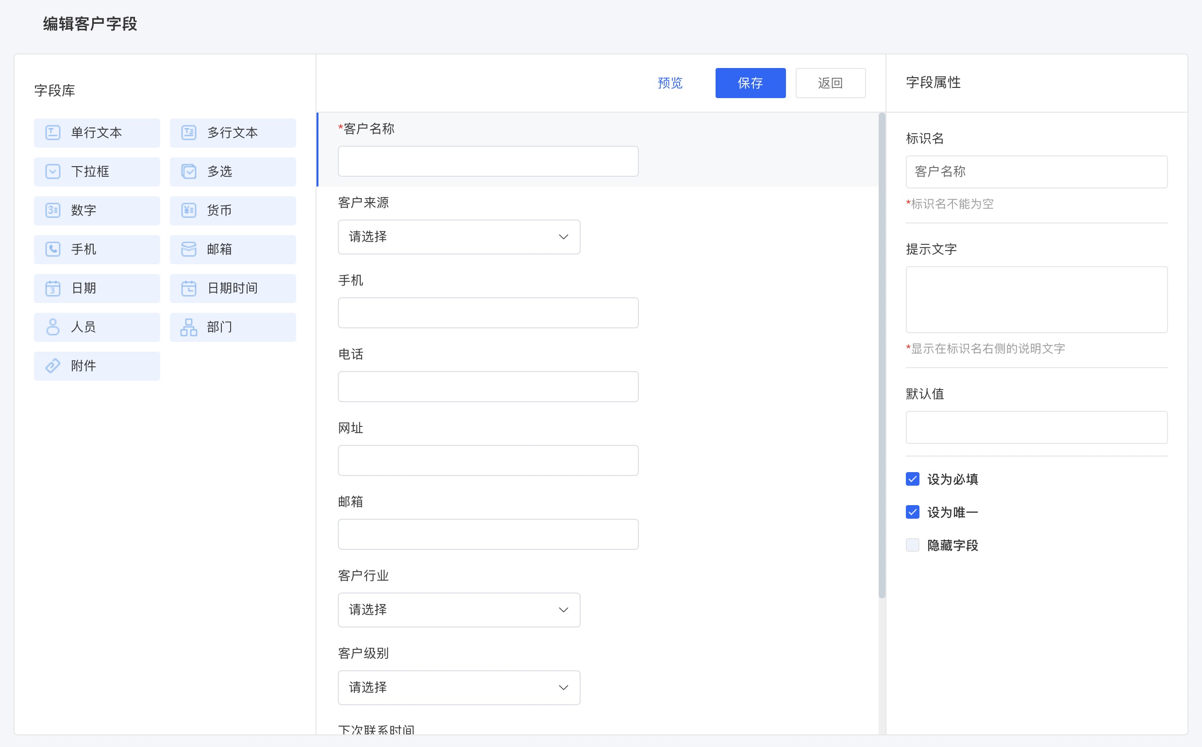 您可以根据企业需求自定义客户信息字段,针对不同企业搭建专属客户档案库。