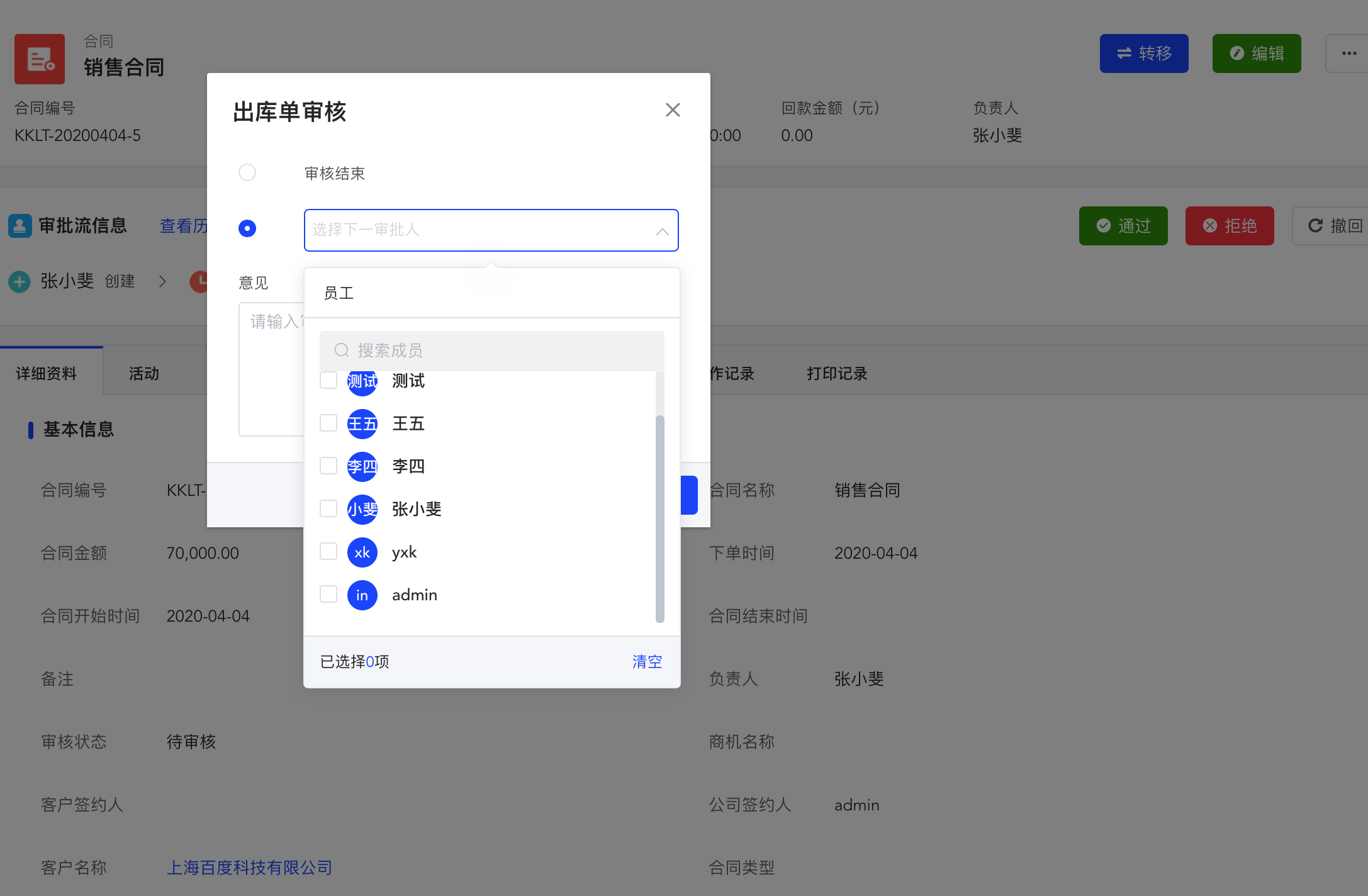 出库单审批