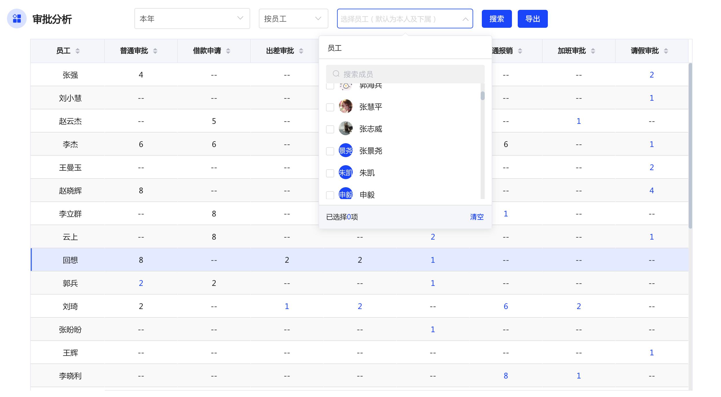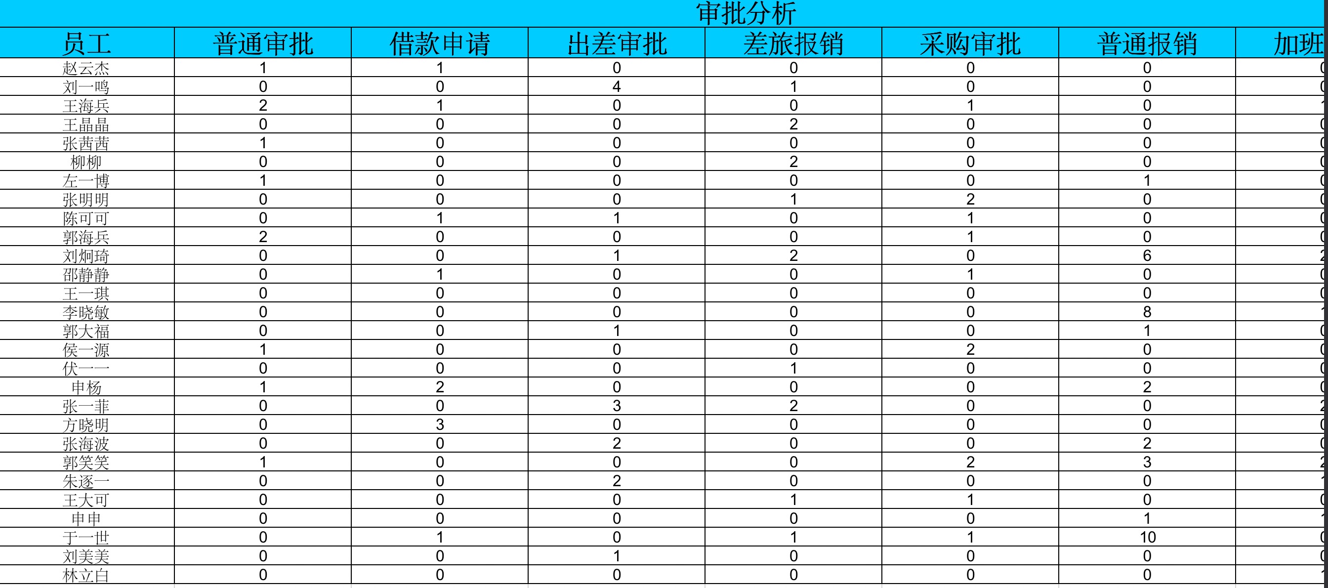以统计表的形式,将请假、出差、加班等审批,更直观的展现给企业,为企业对行政管理提供依据