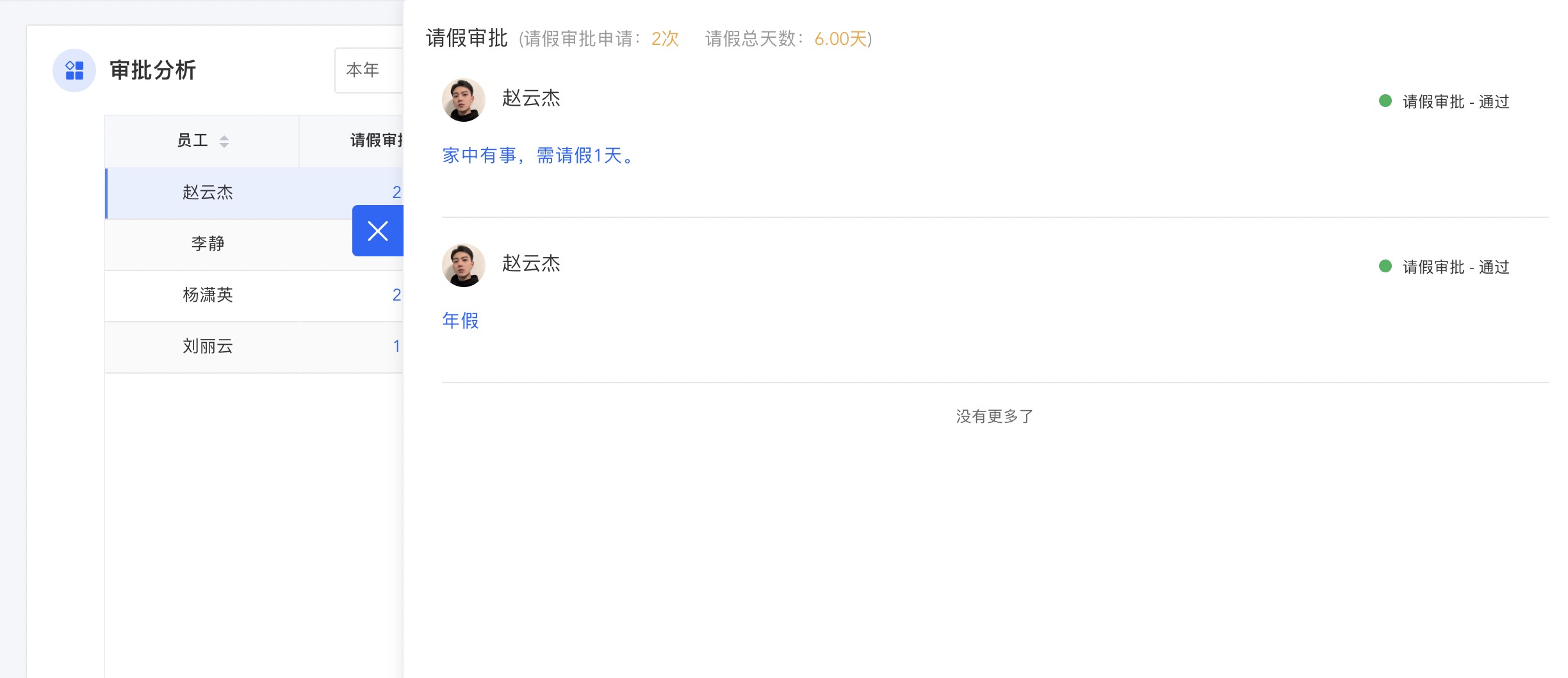 关联OA审批信息可快速查看员工日常工作情况,可使企业管理者对工作以及日常行政管理的事务变得井井有条。