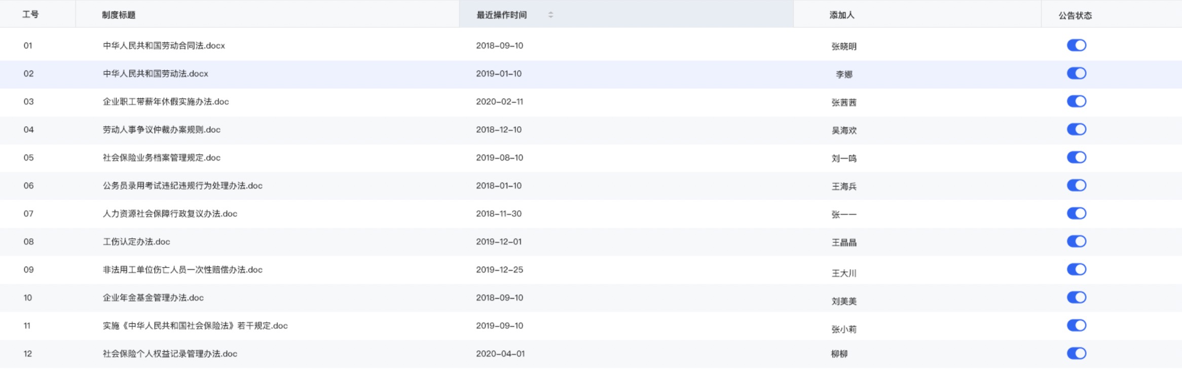 支持设置当前企业特色的制度类别,在线编辑规章制度。根据各个部门、员工选择发送,收到对象会及时通知提醒。