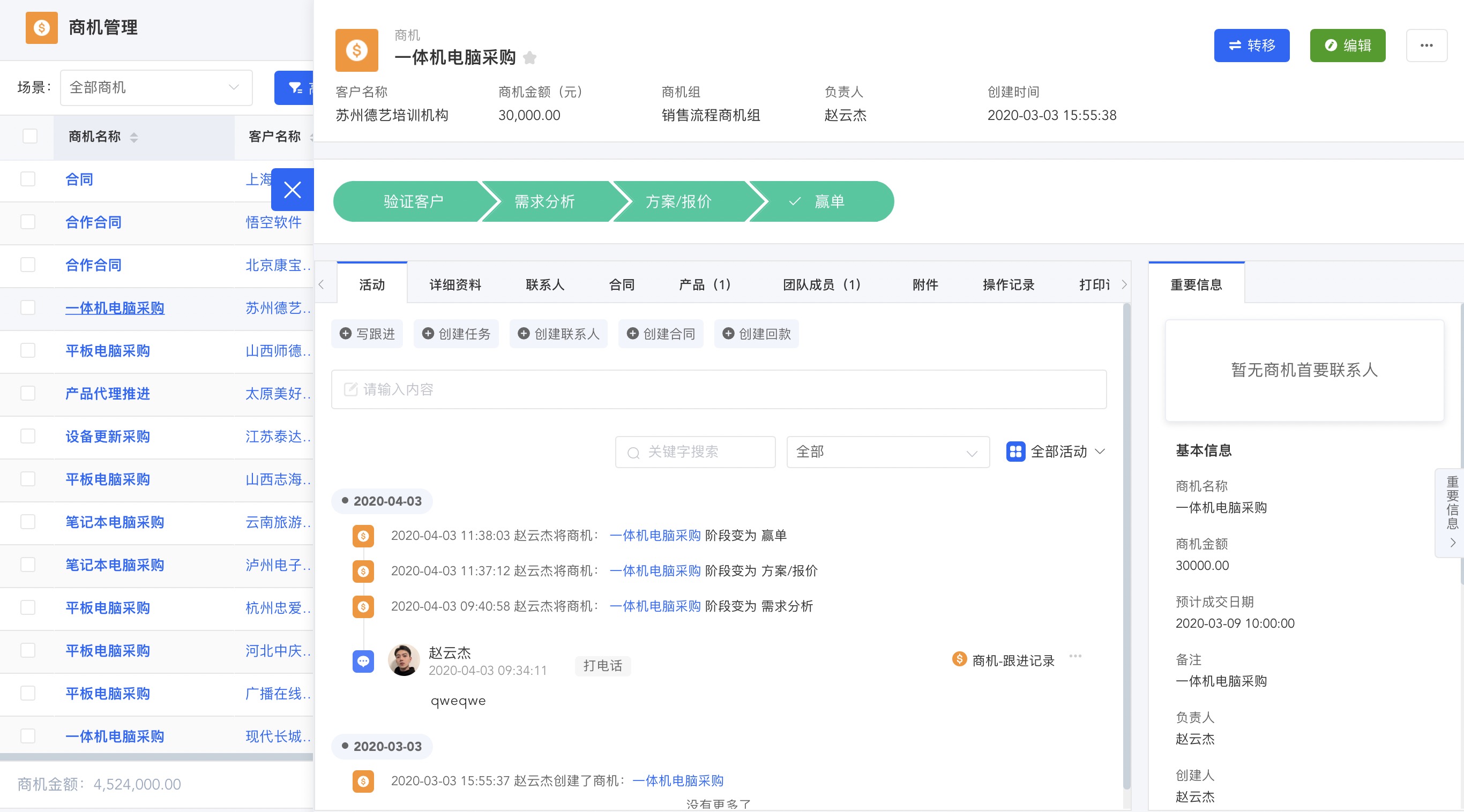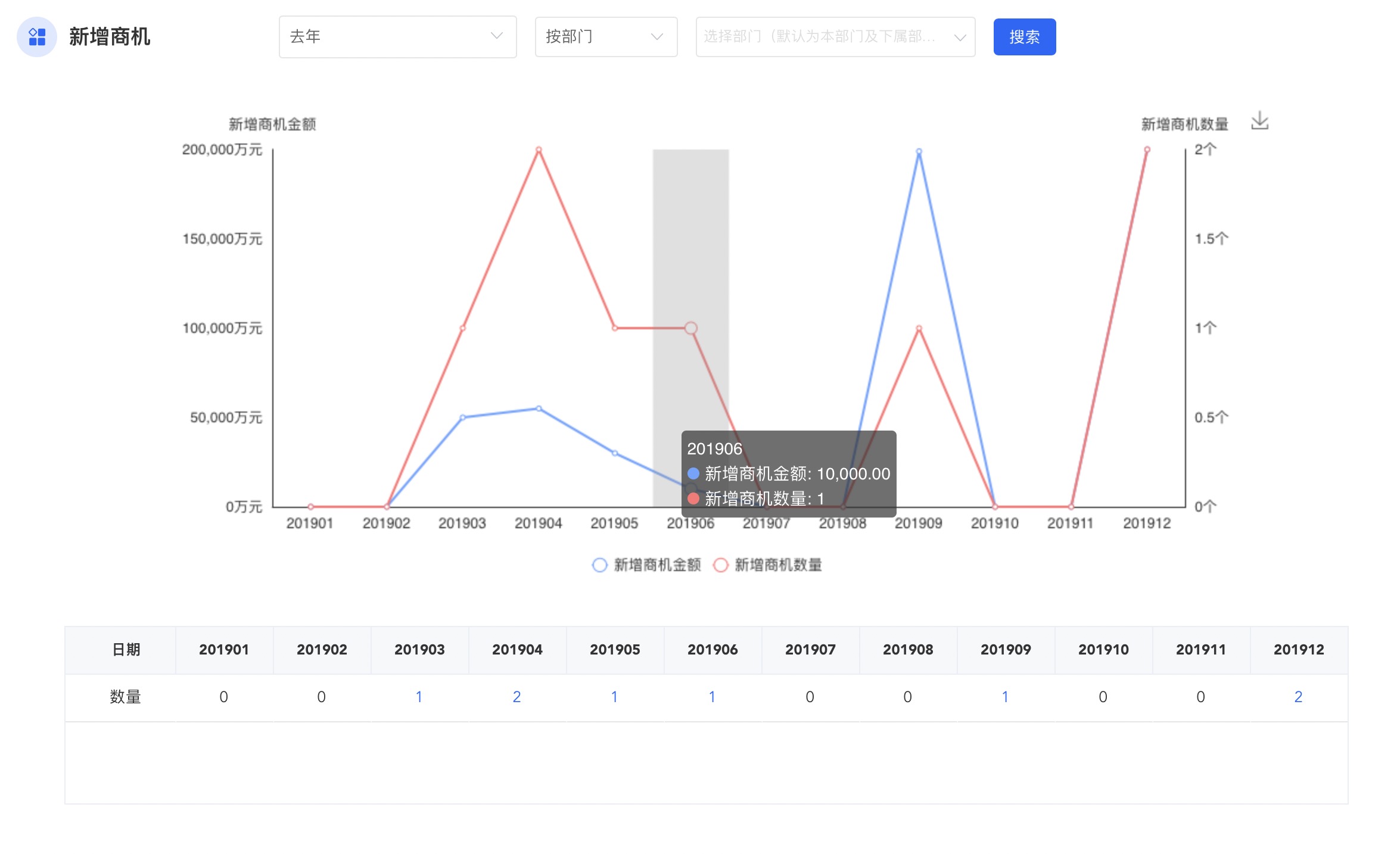 可查看本年销售部门员工新增商机数量及商机详细信息,方便员工进一步的制订销售计划,实现赢单。